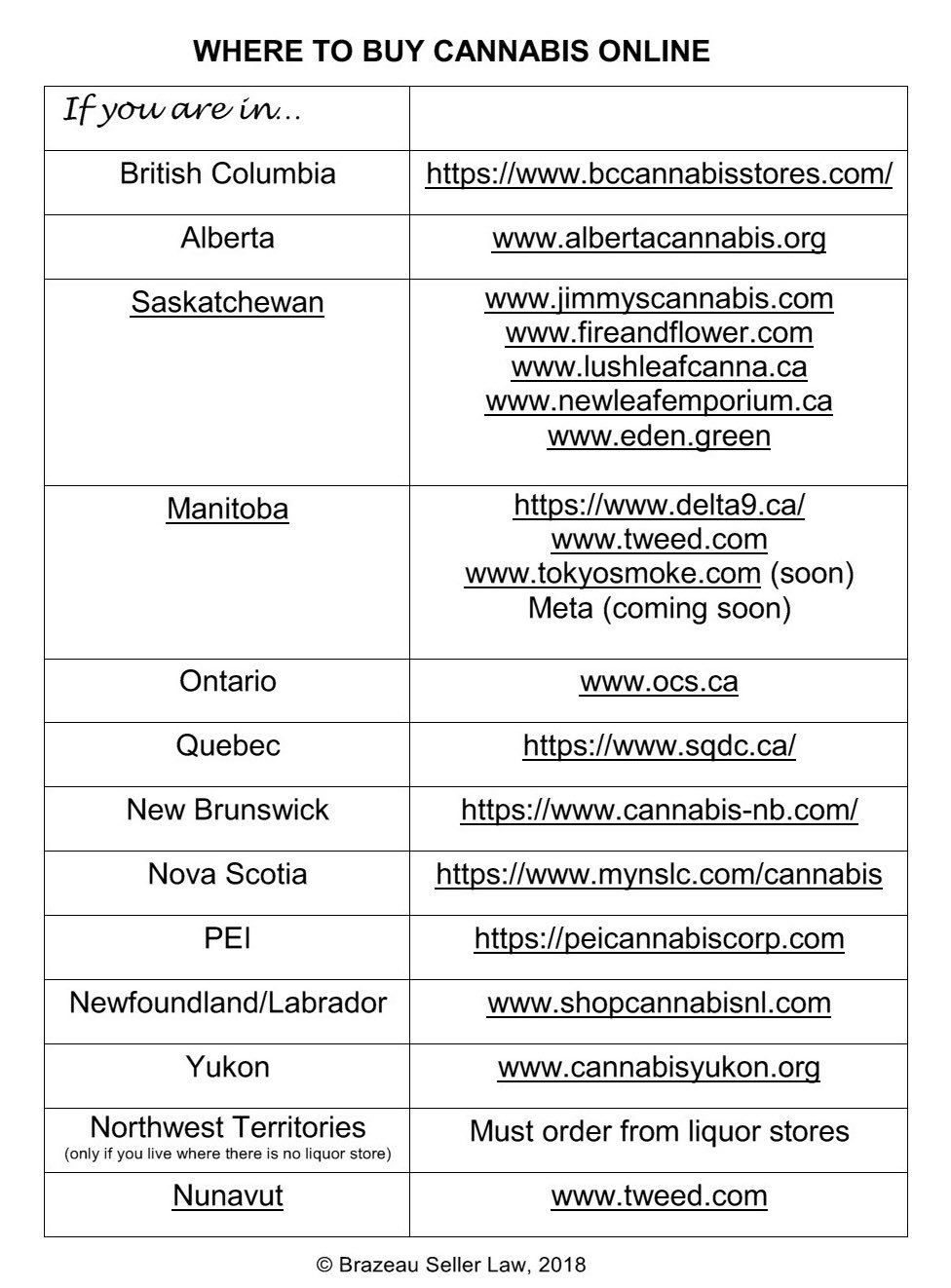 Listed below are all the provinces and their current legal online retailers, and producers which are also licensed for sales.